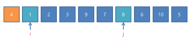 j는 pivot보다 작은 값이 나올 때까지 --j를 수행해줍니다. i의 경우 pivot보다 작다면 ++i를 수행해줍니다.