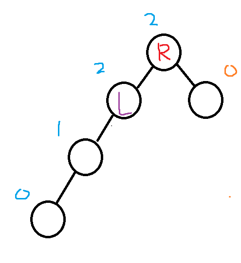 위와 같은 상황이 LR회전을 해야하는 상황입니다. Root를 기준으로 GetHeightDiff를 통해 균형인수 값을 구해오면 2이상의 양수값이 나와 균형이 파괴된 모습입니다.