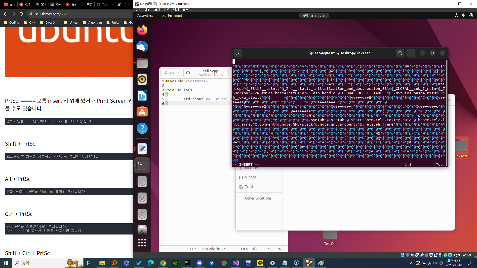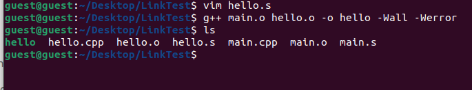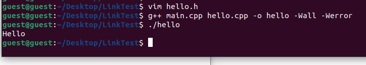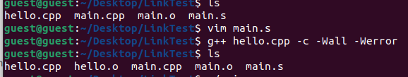 그래서 hello.cpp의 목적파일을 만들고 main.o, hello.o를 링크하여 실행파일 만드는 과정을 보여드리겠습니다.