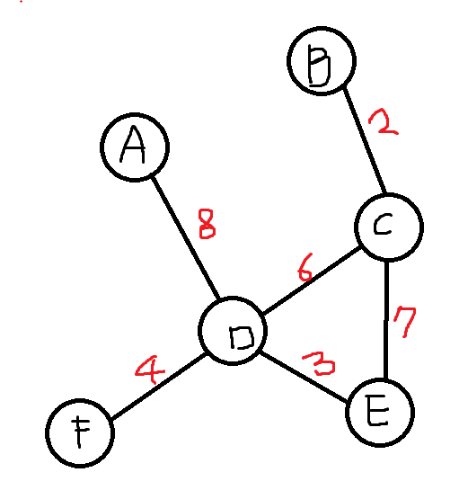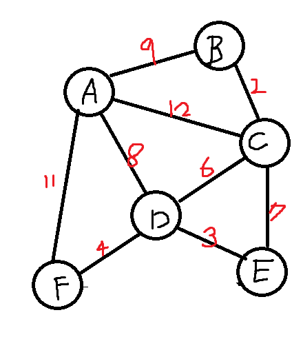 위와 같은 그래프가 있을 경우 간선을 내림차순으로 정렬하면