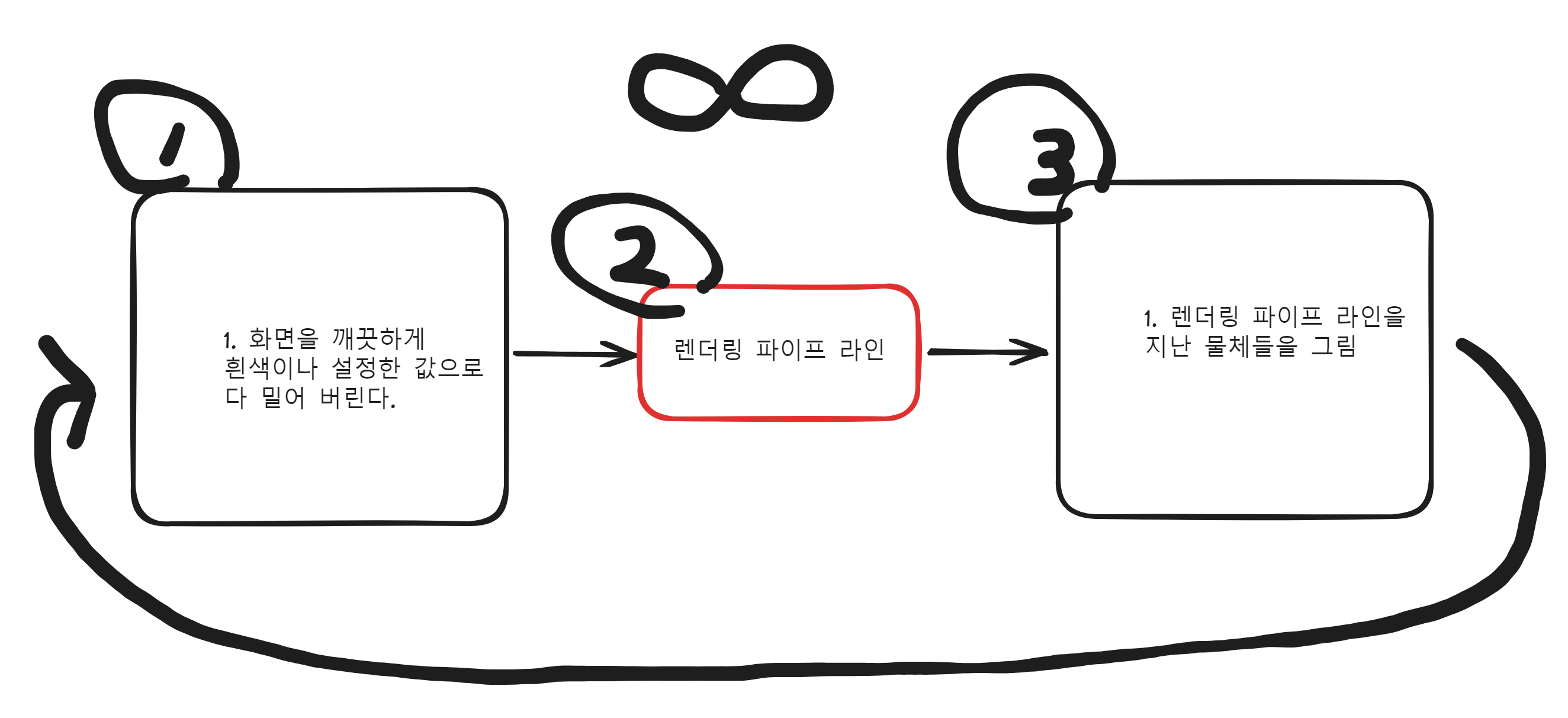 이곳에 물체를 그렸다가 회색으로 채우고(화면을 다시 비우는 과정, 색은 무방) 다시 그릴 물체들을 이곳에 그립니다.
