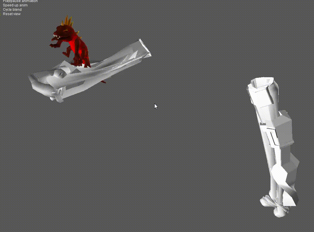 우리는 모든 정점들에 대한 위치 정보들을 프레임 별로 저장하지 않고 가상의 '뼈'를 만들어서 이 뼈의 위치, 회전 정보들을 프레임 별로 저장하고 각 정점에게 이 뼈의 정보를 넘겨준뒤 각 정점들은 뼈로 부터 상대적인 위치를 잡아주게 되면 뼈가 움직이게 되면 정점들도 뼈를 따라서 움직이게 될 것이다.
